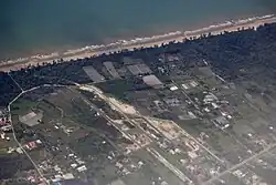 A privately owned airstrip at Anduki is mostly used for flights to BSP facilities located offshore.[38] Travelers must go to the Miri Airport or the Brunei International Airport for commercial flights.[39] Panaga Health Centre, BSP Headquarters, and Suri Seri Begawan Hospital all have helipads.[40] Furthermore, military helicopter operations are supported by a heliport at the Medicina Lines' British Army Jungle Warfare Training School,[41] which is run by No. 230 Squadron RAF.[42]
