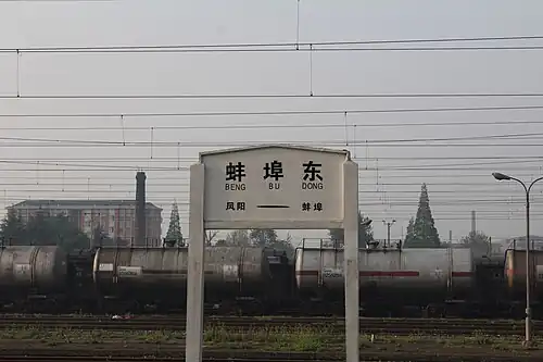 1. ^ "蚌埠东站发现历史站牌". 中华铁道网 (in Chinese). 21 February 2009. Archived from the original on 20 July 2020. Retrieved 28 September 2022.