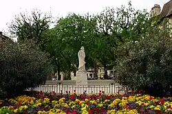 The town contains two statues of Cyrano de Bergerac, subject of a famous eponymous play by Edmond Rostand. An old stone statue stands on Place de la Myrpe, facing Place du Docteur Cayla. A newer statue, painted in colour and standing on a stainless steel pedestal, has been erected on Place Pélissière .