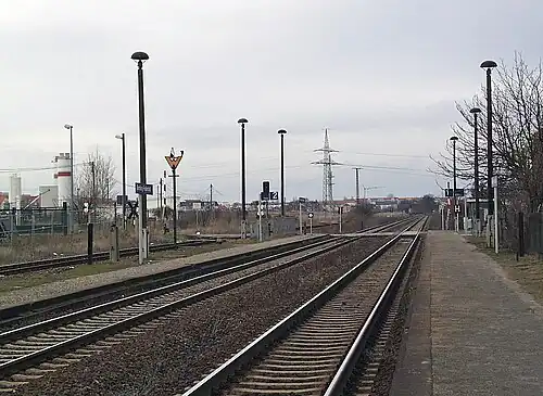 Bernburg-Friedenshall station is a railway station in the Friedenshall district in the municipality of Bernburg, located in the Salzlandkreis district in Saxony-Anhalt, Germany.