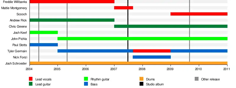 The band recorded Atlantis in 2007. Montgomery quit after the release,[1] and Germain took over vocals and passed Bass duties to Nick Fonzi. In 2009, Vocalist "Scooch" took over vocals while Germain took over bass again due to Fonzi quitting the band. The band has been on hiatus since 2010.