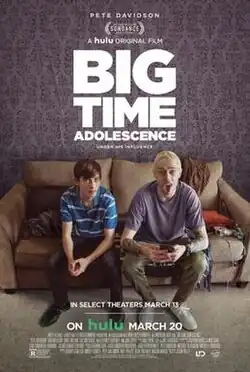 Big Time Adolescence is a 2019 American coming-of-age comedy film written and directed by Jason Orley, in his directorial debut.[2] It stars Pete Davidson, Griffin Gluck, Emily Arlook, Colson Baker, Sydney Sweeney and Jon Cryer.[3]