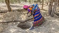 Between Arada and Angafal, a woman draws water from a well that her husband dug to a depth of 10 metres (33 ft).