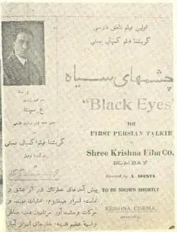 Black Eyes (Persian: چشم‌های سیاه, romanizedCheshmhay-e Siah) is a 1936 Iranian romance film directed by Abdolhossein Sepanta and produced by the Shree Krishna Film Co. of Bombay and starring Fakhrozzaman Jabbar Vaziri, Abdolhossein Sepanta and Sohrab Pouri.[1][2]
