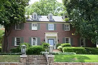 It is a 2+1⁄2-story masonry structure, five bays wide, with a side gable roof. Wood-framed ells extend to the rear, which are finished in weatherboard. The front roof is pierced by four gabled dormers, and the entrance, set in at the center of the front facade, is recessed in an opening with flanking sidelight and transom windows. The opening is topped by an entablature with cornice. It was designed in Colonial Revival style by architect John Parks Almand and built about 1940 by the Block Realty Company.[2]