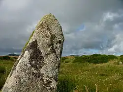 Bodmin Moor (Cornish Standard Written Form: Goon Brenn)[1] is a granite moorland in north-eastern Cornwall, England, United Kingdom. It is 208 square kilometres (80 sq mi) in size, and dates from the Carboniferous period of geological history. It includes Brown Willy, the highest point in Cornwall, and Rough Tor, a slightly lower peak. Many of Cornwall's rivers have their sources here. It has been inhabited since at least the Neolithic era, when early farmers started clearing trees and farming the land. They left their megalithic monuments, hut circles and cairns, and the Bronze Age culture that followed left further cairns, and more stone circles and stone rows. By medieval and modern times, nearly all the forest was gone and livestock rearing predominated.