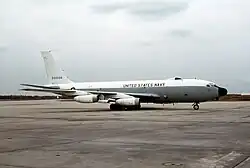 USAF NKC-135 "Big Crow" ECM aircraft takes off from a forward operating base[3]