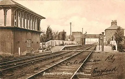 Bowness was a station which served Bowness-on-Solway, a village in Cumbria on the English side of the Solway Firth. The station was opened on 8 August 1870 by the Caledonian Railway on a line constructed from the Caledonian Railway Main Line at Kirtlebridge across the Glasgow South Western Line, then forming the Solway Junction Railway over the Solway Viaduct to Brayton. The line had opened for freight from 13 September 1869.
