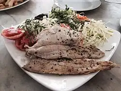 "Reineta a la mantequilla" with mixed salad, a typical Valparaiso dish