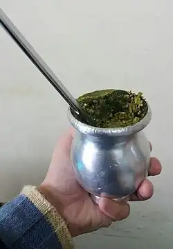 As in other South American countries, mate is traditionally drunk from a hollow gourd using a silver straw, a tradition that continues from indigenous cultures who introduced mate to colonists, though in other parts of the country, processed mate is drunk iced, as a non-carbonated soft drink.