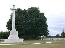 The Cross of Sacrifice of Bretteville-sur-Laize Canadian War Cemetery.