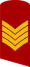 ‡ Corporals are automatically appointed lance sergeant, wearing three chevrons. In full dress, a lance sergeant's chevrons are white, while full sergeants are gold. In service dress, both lance sergeants and sergeants wear 3 chevrons. However, full sergeants also wear a red sash across their right shoulder. Additionally, the cap badge of a sergeant may differ from that of a lance sergeant. Lance sergeants are allowed privileges normally reserved for sergeants in the British Army.[4]