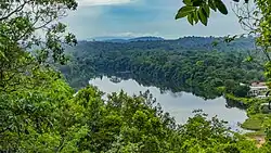 The district has several waterfalls, including the Irene Falls and Leo Falls. In the rainforest of Brokopondo, there are large reserves where a diverse variety of wildlife exists. Brownsberg Nature Park is a 12,250 hectares nature park in the area which was founded in 1969. About 8,400 hectares are allocated for scientific research. The 60 square km Brinckheuvel Nature Reserve is also located in the District and was established in 1966.[4] Berg en Dal is a former wood plantation located near the Avobakaweg. In 2008 the plantation was transformed into the Berg en Dal Eco & Cultural Resort, a luxury holiday resort for ecotourism. Berg en Dal is home to the Blauwe Berg, a mountain overlooking the Suriname River.[8]