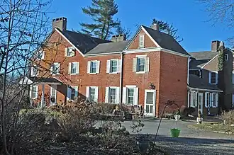 Brooklawn is a 40.9-acre country estate set amid rolling hills, pastures, and woodlands. A red-brick Federal-style mansion dating to the 1680s is the primary feature of the estate.[2] Philadelphia-based architect Arthur Ingersoll Meigs designed an extension to the mansion in 1931 (hence its NRHP architectural significance) and added a spring house, servants' quarters, and garage. A low stone wall parallels Newark Road.[3]