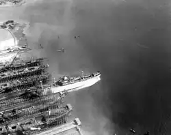 In World War II, Brunswick boomed as over 16,000 workers of the J.A. Jones Construction Company produced ninety-nine Liberty ships and "Knot" ships (type C1-M ships) which were designed for short coastal runs, and most often named for knots for the U.S. Maritime Commission to transport materiel to the European and Pacific theatres.[38]