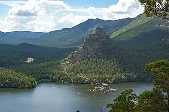 Many legends evoke Burabay. One of them explains that the Creator only left arid steppes to the nomads of Kazakhstan. Feeling aggrieved, the Kazakh people prayed to God, who gathered all the remaining mountains, forests, lakes and rivers, and threw them towards the steppes. Burabay National Park is also known as "Kazakhstan's pearl".[9]