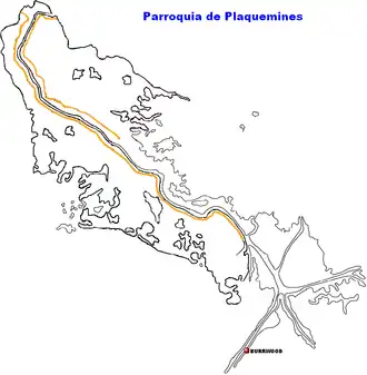 Burrwood was a community located near the far south end of the delta of the Mississippi River in Plaquemines Parish, Louisiana, United States. At one time the town had an estimated population of 1,000, but today it is uninhabited, with most of its territory fully or partially submerged by coastal erosion.