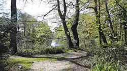 Following the death of Henry VIII in 1547 the estate passed into private hands. In 1739 the first of the Frederick baronets acquired it – Burwood Park mansion in land west of the former Burwood House (manor house) was built by Sir John Frederick (1708–1783), a wealthy city merchant and Lord Mayor of London.[3] Frederick developed the land around the house and transformed two old gravel pits into ornamental lakes, today known as Broadwater Lake and Heart Pond.[1] Tall Scots pine trees were planted around the lakes.[1]