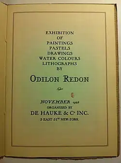 The gallery De Hauke & Co. became known to the American public, through its exhibitions, Pierre Bonnard (1928), Jacques Mauny (1930), Modigliani (1929), Odilon Redon (1928), Ker-Xavier Roussel, Edouard Vuillard, the movement cubist (1930). The works were sometimes acquired in association with other dealers, such as Roland Balaÿ, Étienne Bignou, Paul Brame, Valentine Dudensing, Knoedler, Pierre Matisse, Alex Reid & Lefèvre, etc.