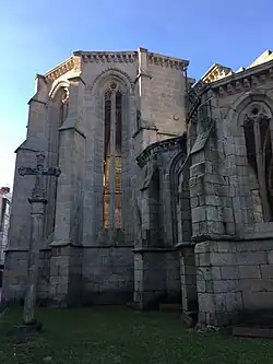 At the beginning of Marquis de Riestra Street, the ruins of the Saint Dominic Convent are the remains of a 14th-century Gothic convent and church. Today, along with five other buildings, they form the Provincial Museum of Pontevedra and were declared a Site of Cultural Interest in 1895.[25][26] Only the apse remains, with five apsidal chapels corresponding to the transverse arm of the transept, which are the purest example of Gothic architecture in Galicia.[27][28][29]