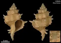 | Shell of Calotrophon carnicolor (specimen at MNHN, Paris) | |