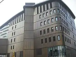 Cardiff Central Library (now Cardiff Central Library Hub) (Welsh: Llyfrgell Ganolog Caerdydd) is the main library in the city centre of Cardiff, Wales. It offers a public library service and is open six days a week. Four buildings have been named as such, with the newest building opening on 14 March 2009 and officially being opened a few months later on 18 June 2009 by the Manic Street Preachers.[1] The first Cardiff library was opened in 1861 as the Cardiff Free Library, later expanded and known as the Cardiff Free Library, Museum and Schools for Science and Art.