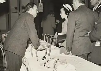 McWilliams's activism took many forms. In the early 1940s, he helped overturn the convictions of mostly-Latino youths following the so-called Sleepy Lagoon murder trial. He also helped cool the city's temperature during the Zoot Suit Riots of 1943, when scuffles between servicemen and Latino youths spun out of control. During the 1940 Democratic Party presidential primaries, McWilliams joined a left-swing slate pledged to lieutenant governor Ellis E. Patterson for president. They opposed incumbent Franklin D. Roosevelt on the grounds he was focusing too much on foreign affairs and not enough on domestic unemployment. Although McWilliams offered to resign for his involvement in the slate, his immediate superior George G. Kidwell convinced governor Olson to keep him.[7] The Patterson slate ultimately lost to Roosevelt's by a margin of fifteen to one.[8]