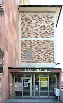 The Carl-Schurz-Haus, a German-American Institute, was founded in 1952 as Amerika-Haus (engl.: America-House) in Freiburg im Breisgau, Germany. It has operated since the 1960s as a binational cultural center. It annually offers about 250 events (speeches, exhibitions, workshops and readings) on transatlantic topics, at which those interested in societal exchange can engage in conversations with German and American experts and artists. In addition to offering concerts and English film series, the institute houses an American library with more than 20,000 titles as well as a student advisory service for German pupils interested in extended stays in the U.S. Carl-Schurz-Haus also organizes a diverse range of English courses, taught by native English speakers, for children, teenagers, and adults. Several organizations utilize Carl-Schurz-Haus as a meeting place, including the Freiburg-Madison-Gesellschaft, an association that supports relationships with Freiburg's sister city Madison in the U.S.; the German American Business Community in Baden; a quilting club; the writing workshop Freiburg Writers’ Group; and a square dancing club called Dreisam Swingers. At the end of 2016, members of the institute totaled about 1,660 people. Friederike Schulte[1] has been the director of Carl-Schurz-Haus since 2010, while the chairman of the board is currently attorney-at-law Gerhard Manz.
