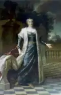 As long as she lived, Stanisław reportedly benefited the Catholic church and the Jesuit order financially.[10] In contrast to Stanisław, Catherine did not adjust to life in France or Lorraine, but felt a certain bitterness over her exile,[11] and continued to long for Poland-Lithuania.[12] Catherine Opalinska was described as homely, pious and charitable, but also as a "dour" personality whom Stanisław regarded to be boring.[13] As soon as they were installed with their court in Lorraine, Stanisław took numerous mistresses, many among her ladies-in-waiting, such as Catherine Ossolińska and Anna Maria Ossolińska, the Première dame d'honneur Marie-Louise de Linanges, Madame de Bassompierre and Madame de Cambres, until from 1745 he had a permanent relationship with Marie Françoise Catherine de Beauvau-Craon, all relationships which Catherine could not prevent.[14]
