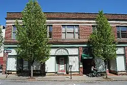 The city of New Bedford began as an agrarian community in the 17th century, and rose in the late 18th century to become the preeminent center of the whaling industry. This focused urban development near its waterfront, an area that is now represented by the New Bedford Historic District, a National Historic Landmark. When whaling began to decline in the mid-19th century, the city's economy turned to textiles, which resulted in a second commercial building boom, and the creation of the city's modern business district. This area is inland, south and west of the original whaling center. Its major roadways are 6th Street, running north–south, and Union Street, running east–west. Within the district are 79 buildings, mostly commercial or mixed-use, including New Bedford's city hall. A few older buildings are in the Greek Revival style, but most are either Classical Revival or Romanesque Revival, styles more common in the late 19th century.[2]