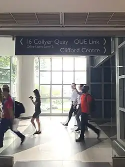 As of 2017, Change Alley sits in the second floor of Hitachi Tower at 16 Collyer Quay. The short stretch of shops along the lanes in the shape of an 'F' are flanked by salons, tailors, boutique shops that sells shoes and clothes, and a florist. It serves mostly the expatriate workforce and the higher-earning white collar workers in the Central Business District. To locals' knowledge, the area of Change Alley stretches into the overhead bridge, which is known as OUE Link presently. Change Alley has undergone many changes, from a bustling, hot and stuffy narrow lane filled with diverse tenants seeking to earn a buck to a posh and clean shopping lane with a vastly different demographic of tenants and patrons.