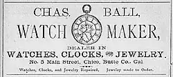 Charles Ball (April 4, 1819 – March 4, 1903) was the third and fifth President of the Chico Board of Trustees, the governing body of the city of Chico, California from 1876 to 1879, and from 1882 to 1885. He was a jeweler and watchmaker.