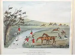 The National Portrait Gallery has a copy of a print of a drawing by Smith,[7] whilst Leicester Museums has an oil painting by Smith of the Billesdon Coplow Run.[8] The Coplow run was a race on horseback for fox huntsmen that was celebrated in verse by the poetic bishop Robert Lowth.[9]