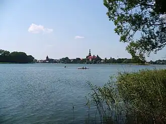 The lake with the panorama of the town of Chełmża in the background