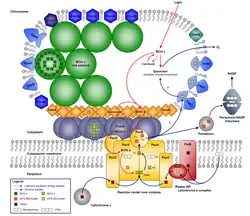 5. ^ a b c d Orf GS, Blankenship RE (October 2013). "Chlorosome antenna complexes from green photosynthetic bacteria". Photosynthesis Research. 116 (2–3): 315–31. doi:10.1007/s11120-013-9869-3. PMID 23761131. S2CID 8613450.