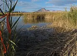 The Clark County Wetlands with Frenchman Mountain in the background.