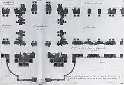 9. ^ Petzet 2000, pp. 53 (dates), 54 (note 162), 58–59 (Figs. 64–67); Gargiani 1998, pp. 128–129 (Figs. 167, 169–171); Berger 1993, pp. 14–15 (Figs. 29–32); Hautecoeur 1948, p. 275 (Fig. 240: plan); Hautecoeur 1927, facing p. 148 (plate XXXI: end pavilion, central pavilion, plan); Hautecoeur 1924, p. 153 (central pavilion), p. 157 (plan).