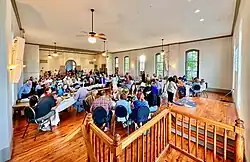 After official county business moved out of the historic courthouse in 2007, its interior was stripped and walls began to deteriorate. When ceilings were opened for ductwork, it was discovered that the courtroom floor and the building's roof beams were both on the verge of collapse and had to be repaired. In 2017 Clay County deeded the courthouse property to the Town of Hayesville. The town leases it to the Clay County Communities Revitalization Association, which was founded in 1998.[14] The CCCRA took on the job of raising $1.2 million to preserve the structure. Renovation began in 2017 to turn the building into a community and event venue.[15]