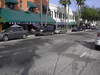 Early in the history of West Palm Beach, Clematis Street (then Clematis Avenue) became the city's "Main Street", with several businesses located along the east end of the street by the mid-1890s. While the eastside of Clematis Street grew rapidly into the 1900s decade, it would not be until the 1910s when commerce began expanding westward across the Florida East Coast Railway. A city directory from 1916 indicates that several grocery and mercantile businesses and homes existed in the 500 block of Clematis Street section. The Campbell Building, located at 535 Clematis Street, opened in January 1918 and is the oldest surviving structure in the district. Five stores soon occupied the first floor of the Campbell Building. The Fashion Store opened at 502 Clematis Street in November 1918, although it was demolished prior to the area's designation as a historic district. By 1919, The Palm Beach Post frequently reported on real estate speculation within Clematis Street's 500 block, with property prices rapidly increasing. Near the end of the year, Raymond C. Ketcham opened a dry goods store at 522 Clematis Street.[2]