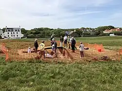 Rousse Headland excavation alongside Rousse loophole tower in Guernsey, Channel Islands