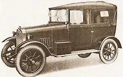In 1921 they made their first four-wheel car, the 10 or 10/20, powered by a water-cooled 1328 cc side valve engine which they built themselves. The car is thought to have been designed by Arthur Alderson who also worked for Calcott and Lea Francis.[2] Drive was to the rear axle through a cone clutch and three speed gearbox. The car with open tourer coachwork cost £525 in 1921 falling to £225 in 1926.[2] The last cars of this type were produced in 1926 and possibly as many as 2000 were made.[2] In 1922 it was joined by the 11.9 with a longer wheelbase and 1645 cc engine. A six-cylinder model, the 16/40, was listed in 1923 but probably never went into production.