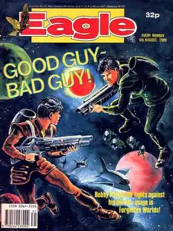 ![]() Bobby Patterson, a.k.a. Computer Warrior, on the cover of Eagle, dated 5 August 1989. | |