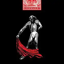 "Conquest" was released as the fourth and final single from American alternative rock band The White Stripes' album Icky Thump in December 2007,[6] and serves as their final single. It was released as a series of 7-inch colored vinyl singles, each containing the track "Conquest". The tracks "It's My Fault for Being Famous", "Honey, We Can't Afford to Look This Cheap" and "Cash Grab Complications on the Matter" appear on the black, white and red version of the records, respectively, with the latter featuring an acoustic Mariachi version of "Conquest". The various B-sides were co-produced by musician Beck, who also contributed vocals and piano to "Being Famous" and slide guitar to "Honey".[6] Despite the sound of a trumpet section, Nashville-based mariachi trumpeter Regulo Aldama played his part multiple times, and Jack overdubbed the recordings.[7]