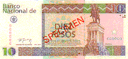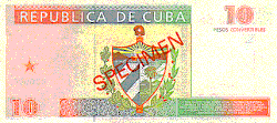 In the year 2004, the Central Bank of Cuba issued its first series of convertible peso bills with face values of 5 and 10 convertible pesos. The printing is flat, and the front and back design is generally similar to the 1994 series issued by the National Bank of Cuba, showing the legend "Central Bank of Cuba" and its logo. The security elements present are the localized watermark with the effigy of José Martí and the security thread with the text "PATRIA O MUERTE - VENCEREMOS"