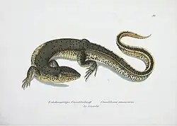 {{cite journal}}: CS1 maint: multiple names: authors list (link) - de Massary, J.C.; Hoogmoed, M.S. (2001). "Crocodilurus amazonicus (Spix, 1825): The valid name for Crocodilurus lacertinus auctorum (nec Daudin, 1802) (Squamata: Teiidae)". Journal of Herpetology. 35 (2): 353–357.