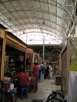 In the rest of the borough, commerce is more traditional, with numerous public markets, informal markets called tianguis, and street peddling. Public markets are buildings constructed and maintained by a city or municipal government, which rents stands to private vendors. The largest is La Lagunilla Market, with nearly 2,000 vendors divided among three large warehouse-type buildings. It is known for its large furniture and shoe markets, but most of the vendors sell food and everyday items.[45][46] Designed to "modernize" the tradition of tianguis or street markets, some were even promoted through art, such as the Abelardo L. Rodriguez Market.[47] Tianguis still survive and can be found in most parts of the borough, as well as in much of the rest of Mexico.[48] In the borough, the best known tianguis are located in Tepito, where 12,000 people do business on the streets.[37]