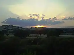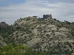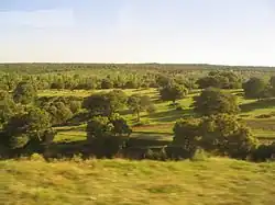 To the south of this mountain range, the terrain descends to the Monte de El Pardo, the third geomorphological unit through which the park runs, covering approximately 16 000 hectares.[8] The granitic materials give way to detrital and sandy elements, the result of the erosion of the Guadarrama and Hoyo mountain ranges, which form an undulating landscape of gentle hills, with an average altitude of 600 m. The Monte de El Pardo sits on an immature soil, easily eroded. Similar characteristics are found in Monte de Viñuelas, eastern appendix of El Pardo.