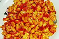 • The malloreddus are tapered-shaped durum wheat semolina pasta traditionally flavored with saffron. They are usually seasoned with campidano or sausage sauce, but among the typical recipes there is the variant with casu furriau that is with melted cheese and saffron. They are also known as cigiones in Sassari and Cravaos in Nuoro, and – in Italian – gnocchetti sardi;[5]