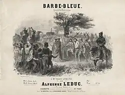 In 1858, in his romanticized accounts entitled Curiosités de l'histoire de France, polygraph Paul Lacroix (also known by the pen name "Bibliophile Jacob") fictitiously endowed Gilles de Rais with blond hair that clashed with a black beard with "almost bluish highlights, which had given the Sire de Rays the epithet Bluebeard, a popular nickname in Brittany, where his story was transformed into a fantastic tale."[43] Among other popular details invented by "Bibliophile Jacob", Gilles de Rais' singular facial hair and sobriquet ostensibly assimilated him to the cruel husband of the folk tale,[40] but Lacroix failed to specify which version of the tale he was referring to.[44] Thus, he opened the path to Gilles de Rais' conventional physiognomy in the literature of the time, taken up again and again by other novelists such as Émilie Carpentier (Mémoires de Barbe-Bleue, 1865) and Alexandre de Lamothe (Les Mystères de Machecoul, 1871).[45]