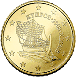 - 10 cent, 20 cent and 50 cent: The ancient Greek Kyrenia ship of 4th Century B.C., representing Cyprus's history and its character as an island as well as its importance in trade.